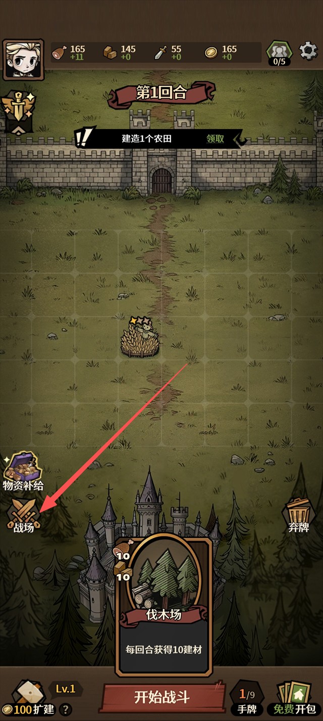 4、界面下方是手牌区,您可以通过拖曳卡牌进行建筑部署,使用卡牌会消耗相应的资源
