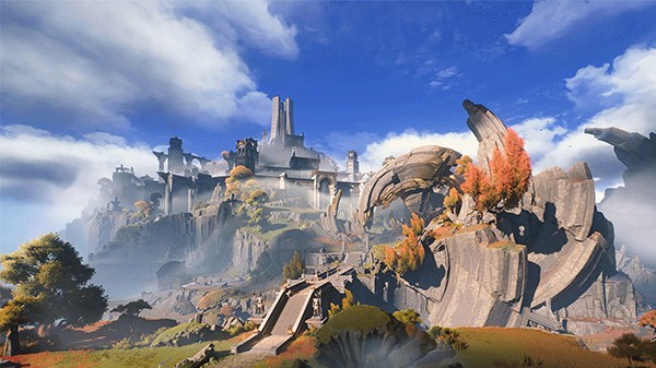 地势平坦且广阔的峡间平原,因散落在地表的、由远古熔岩堆积形成的巨型石柱丛景观而得名。数百年前,七丘文明曾在此扎根并萌生新芽,如今这里仅存一些古村落供旅者们中转、休憩——巨石原通常是异乡人游历七丘高地的起点。