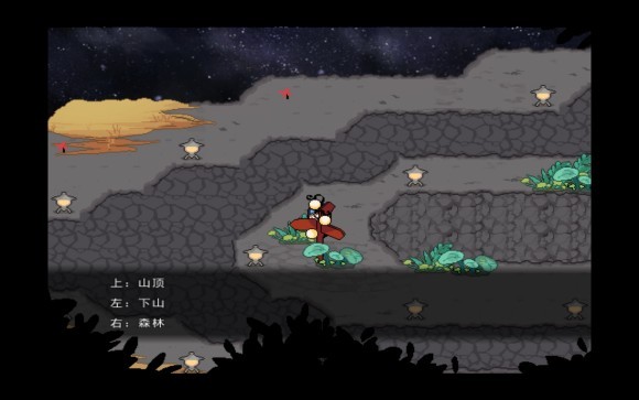 接下来再上山顶的话就是相似的剧情,不过这次我们选择直接跑路,这里剧情会强制存档,因为被boss追上或者碰到鬼火就会直接跳游戏结束界面,我们需要从山上一直跑到初始的山脚,这boss初见追着你可能会有点紧张手忙脚乱,不过他的速度并不快而且会在原地溜达一下才走直线过来追,所以只要我们不楞在原地基本是不会被追到的,还有这个鬼火