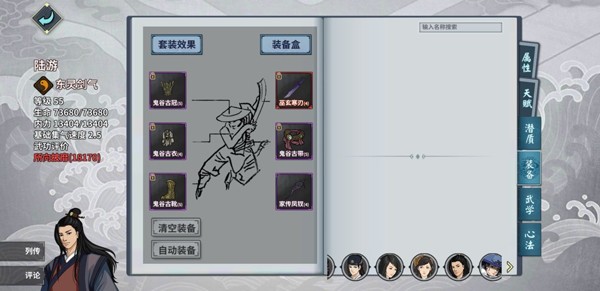 1、作为控制的陆游,pve推荐鬼谷套、自带饰品、巫玄刀或鬼谷武器