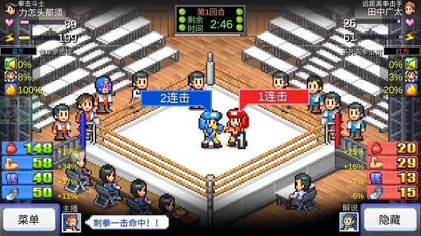 2、耐力:比赛中出拳回避都会消耗,随着耐力下降各种属性会下降,耐力为0的时候脚步就变1了,基本就是被对面追着打了。