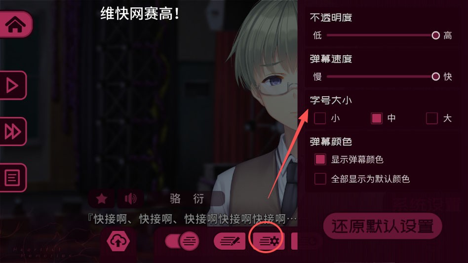 4、此外,玩家也可以根据个人喜好,自定义弹幕文字内容,并调节透明度、移动速度、字体大小及颜色等参数,实现更个性化的显示效果。