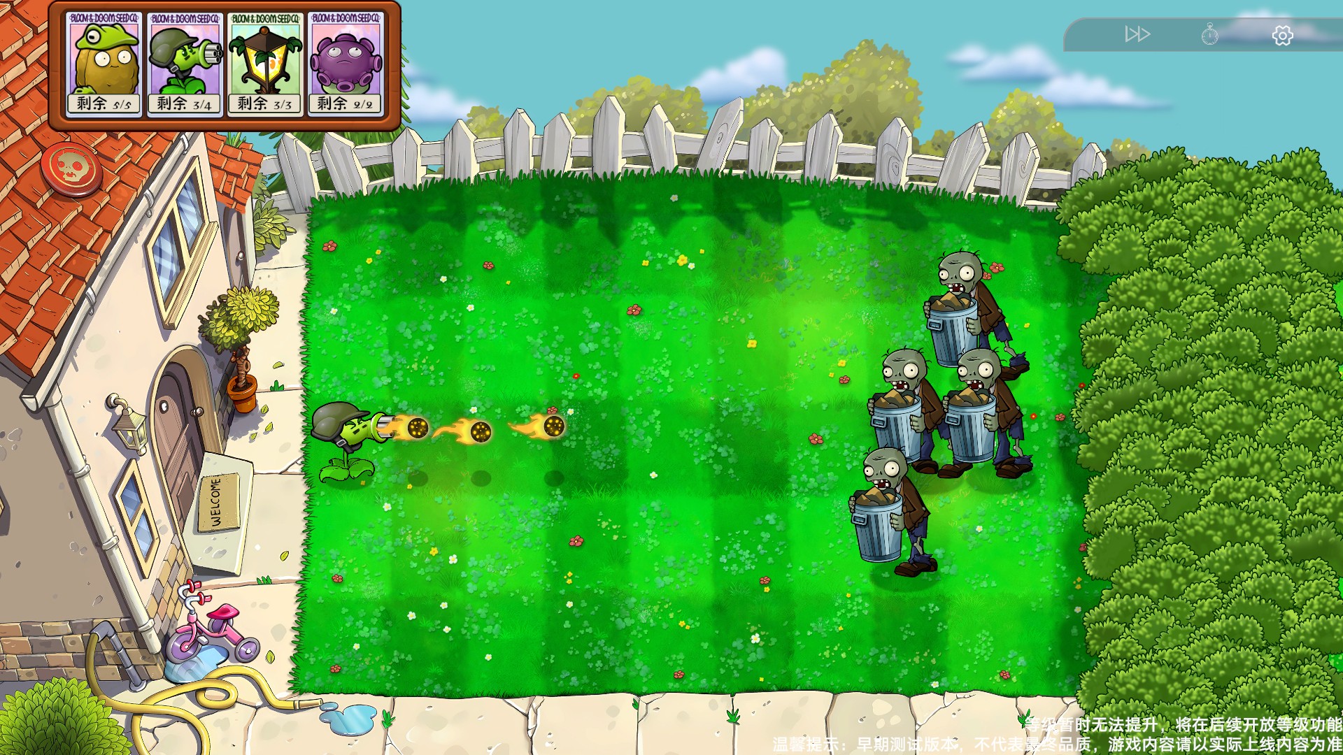 4、选择好要挑战的世界之后,接下来我们就可以正式进入游戏,然后通过放置植物来攻击僵尸。