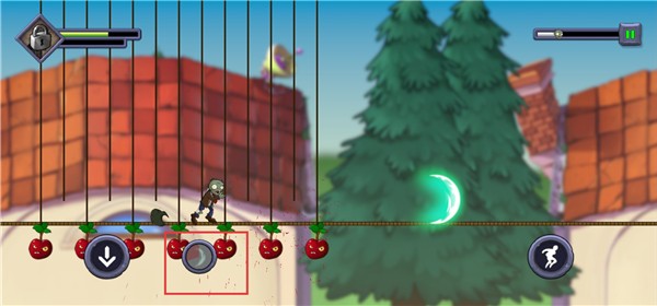 5、获得武器后,点击武器释放剑气将前方的樱桃炸弹消灭。