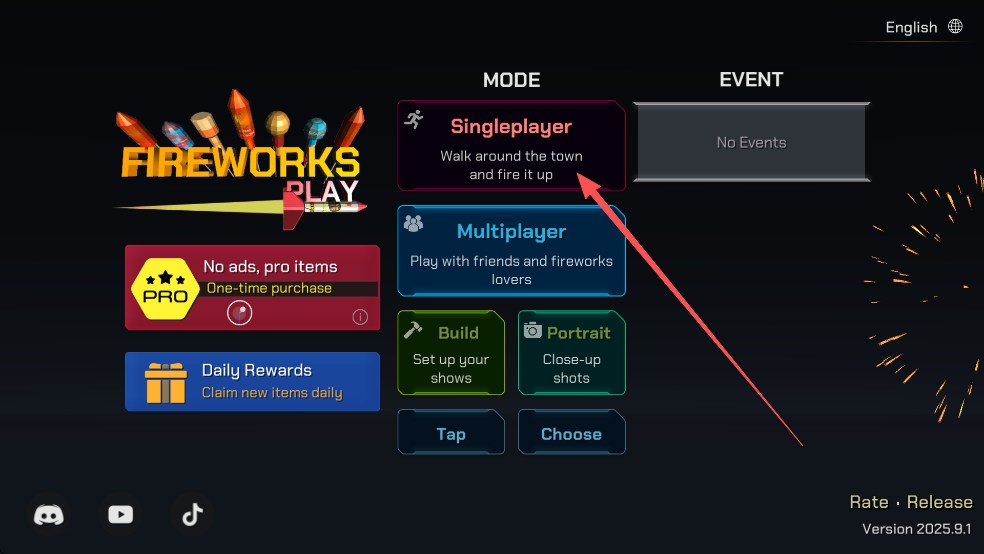 1、打开游戏该界面后,点击这里可以切换游戏的横屏与竖屏模式,以不同角度去欣赏烟花。