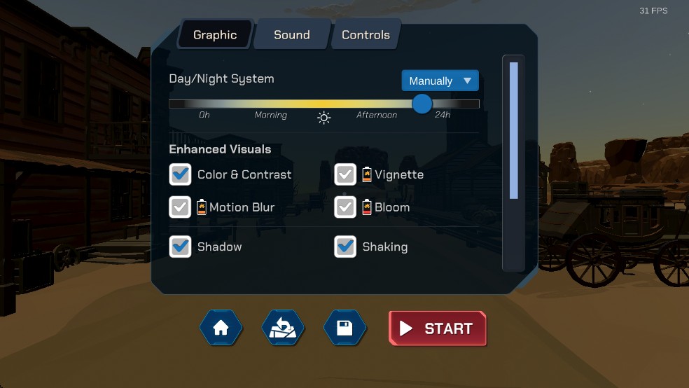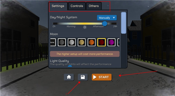 3、然后设置日夜系统,调节游戏内的各种参数,最后点击Start