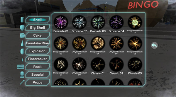 7、在这里我们可以选择各式各样颜色以及形状的烟花。