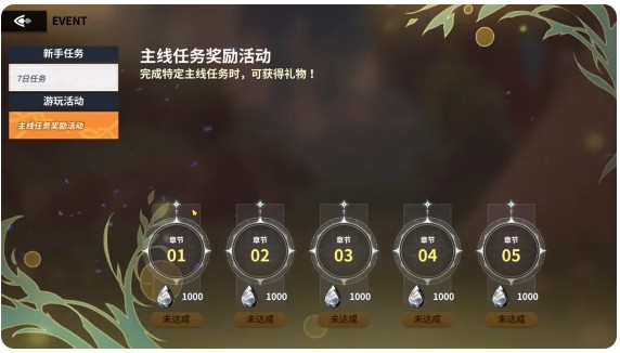 在「主线任务奖励活动」里面,每完成1个章节时可以领取1000黑水晶,奖励是不是很丰厚呀~!