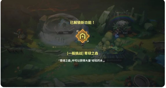 推到第1章第7节时,就会解锁「一般挑战·青绿之森」副本,在这里可以获得大量的「经验药水」。
