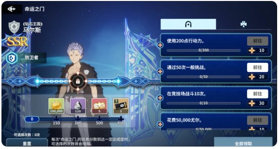 在「7日任务」里面给你们安排了超级丰厚的奖励,有黑水晶以及抽卡资源!达成最终目标,还可以获得5个「SSR万能碎片」!