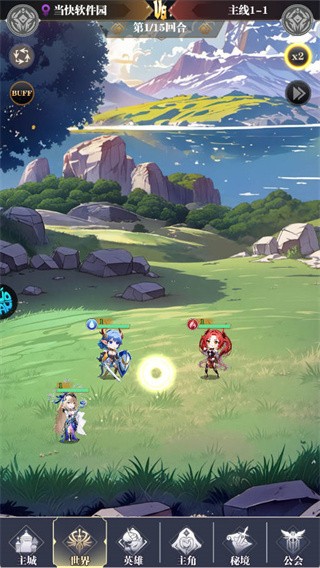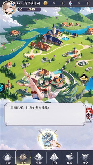 3、初次进入会触发新手引导流程,按照系统提示操作,点击进入“世界”界面继续推进。
