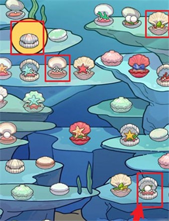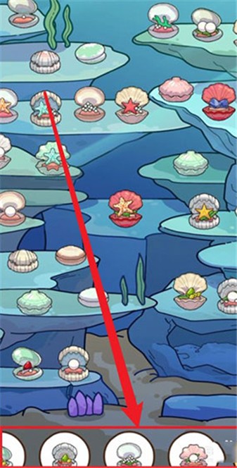 1、如图所示首先进入【海底世界】关卡在下方查看需要寻找的贝壳类型;