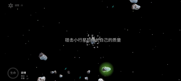 2、在开始时你将控制小行星开始,吸收其他小行星,但你不能撞到任何星球;