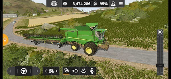 随着游戏往后推进,我们的收割机会越来越大,越来越宽,割台也越来越长,因为收割机要辗转于不同的农田收割,大家肯定会发现带着割台在路上行驶非常不方便,遇到狭窄路段腾挪起来很困难