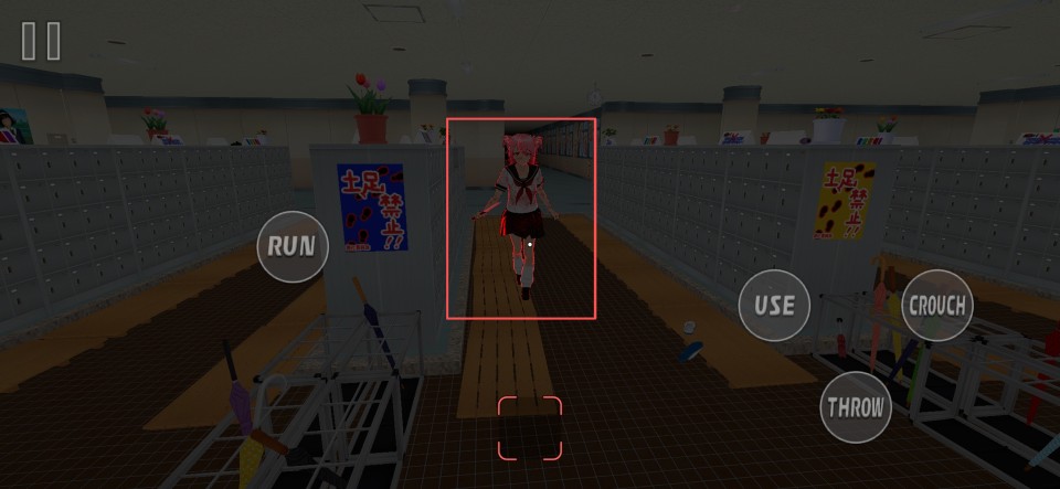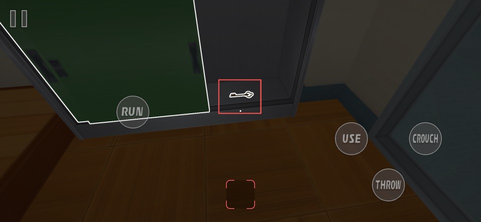2、进入关卡后,通过左下角的虚拟摇杆控制角色行动;界面左侧的【Run】用于加速奔跑,右侧则分别对应【Use】交互、【Crouch】下蹲以及【Throw】投掷操作。