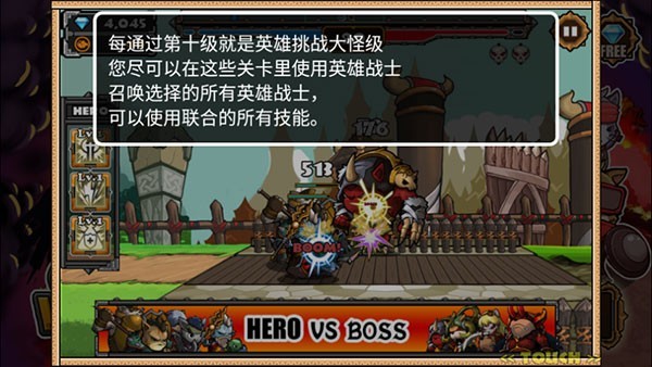 4、每通过第十级就是英雄挑战大怪级,玩家需要合理的召唤英雄战士去击败大怪