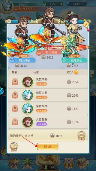 4、根据自己的战力,挑选可以战斗的对手点击挑战