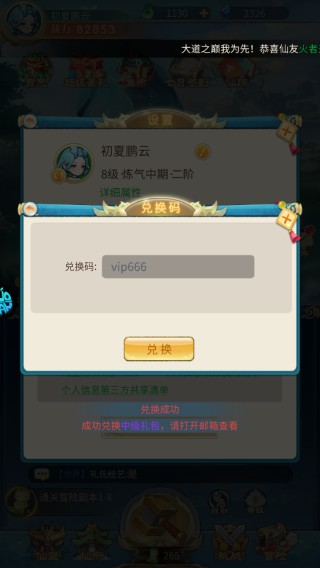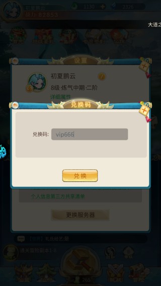 3、将兑换码输入
