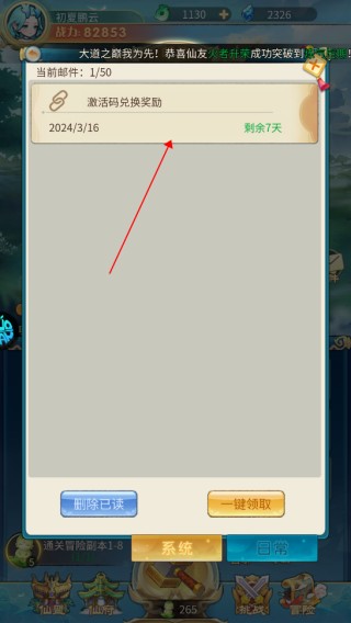 5、进入邮件界面,领取奖励即可