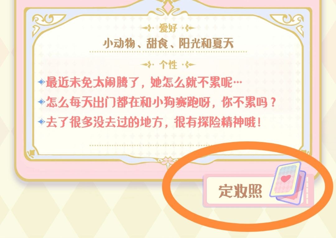 角色卡在仓库使用后,可在角色→右下角定妆照进行更换(悄咪咪:换了万圣节图bgm会变哦,三张都换回初始图bgm就变回去啦)角色里的描述也会随着女儿心情变化。