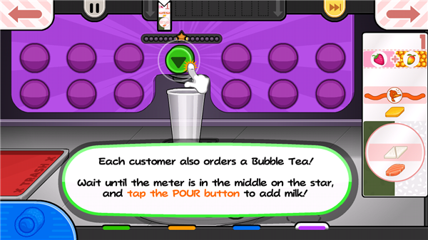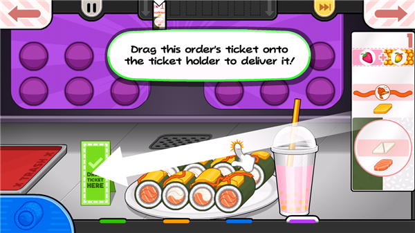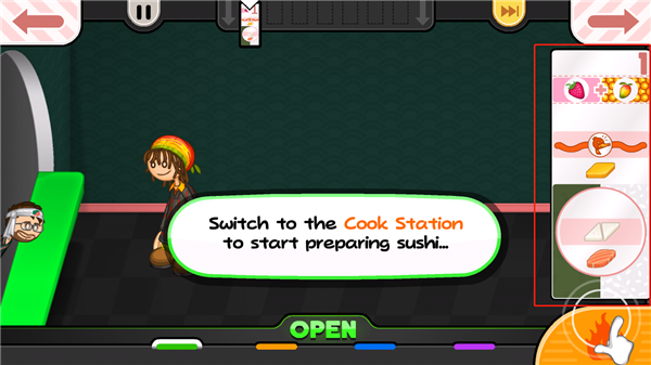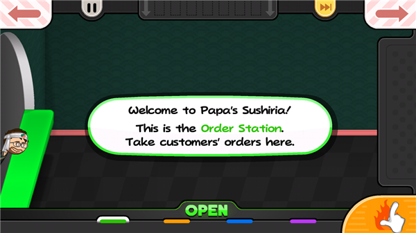 4、接下来就会为玩家介绍寿司店,点击右下角的按钮;进入订单站,顾客的订单都在这里;