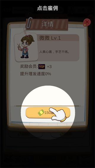 3、最重要的就是理发师,每个理发师的速度和奖励都是不一样的;