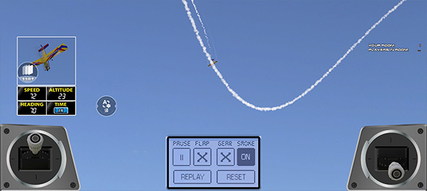 3、进入游戏后,左下角按钮控制飞机前进的方向和轨迹,右下角按钮控制上升高度等。