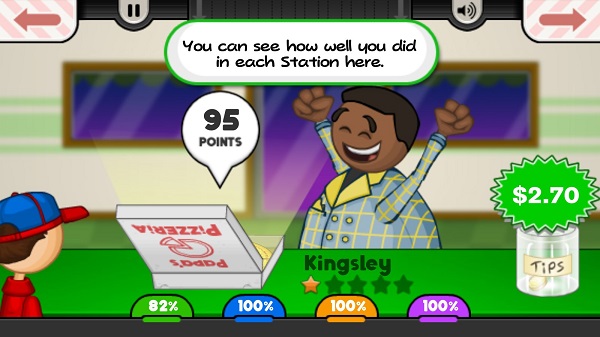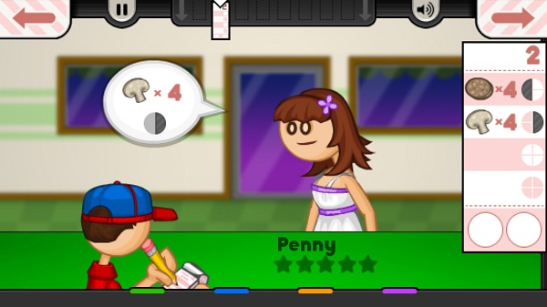 ps:如果顾客在玩家点击“接受订单”按钮之前排队等待的时间太长,或者玩家准备订单的时间太长,那么玩家就会失去积分。顾客会根据玩家制作的披萨打分,并在小费罐中提供小费,以及赚取迷你餐券的积分。
