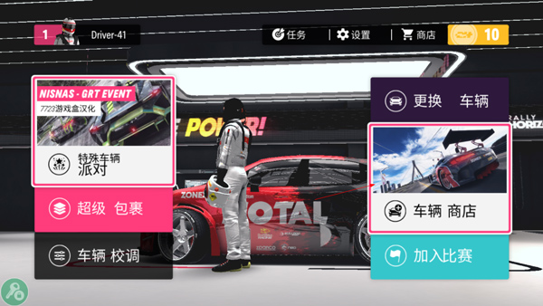 1、打开拉力地平线手游,点击右下方车辆商店;