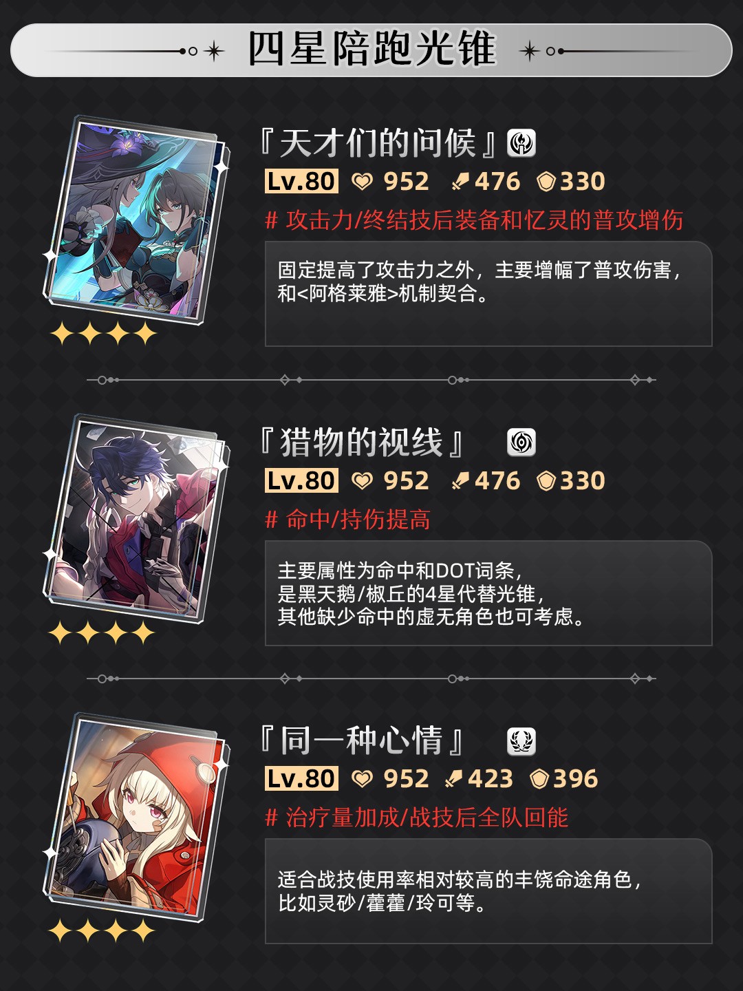 ▶▶ 接下来是四星陪跑「角色&光锥」的卡池信息