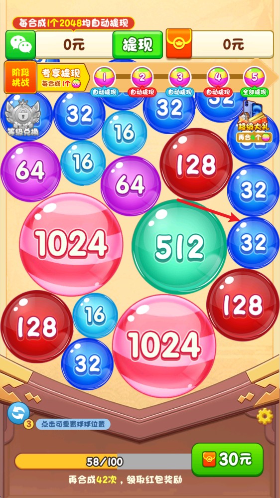 3、合成出2048的彩球就能够获得对应的奖励了。