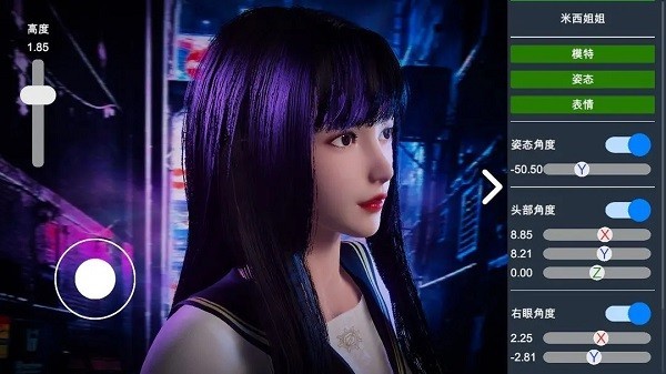 5、进入“表情”界面,您可以进行更为精细的编辑,轻松改变角色的眼睛、手指角度、嘴巴和眉毛等细节,让模特表情更加生动