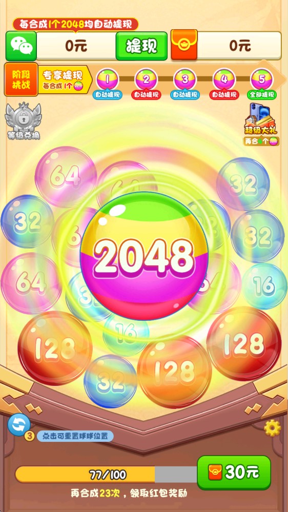 3、合成出2048的彩球就能够获得对应的奖励了。