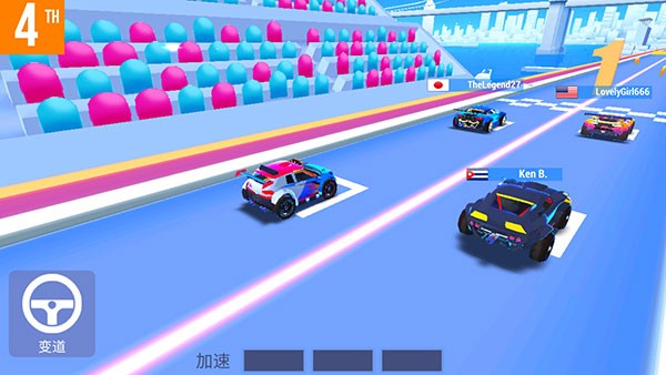 2、倒计时结束时,所有赛车都会出发,整个过程自动加速,我们控制好方向即可。