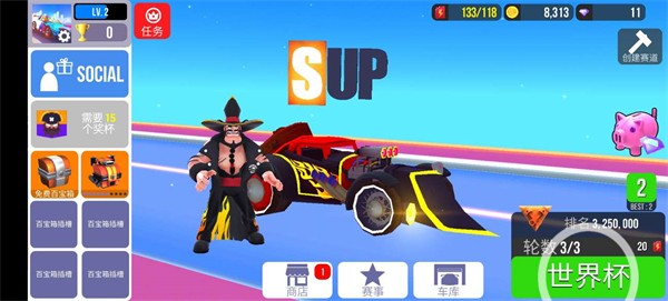 SUP多人赛车汉化版是一款卡通风格的赛车竞速游戏,玩家将驾驶各种各样的赛车加入比赛,运用丰富的改装系统,让你可以尽情地彰显个性,不断提升性能,来超越所有的对手。精致的美式卡通画风,搭配绚丽的色彩,为大家呈现一场视觉盛宴,燃爆全场,尽情释放你的激情,与世界各地的赛车手们一较高下。游戏内含丰富的赛车型号,都有着独特的外观和特点,等待玩家来收集。