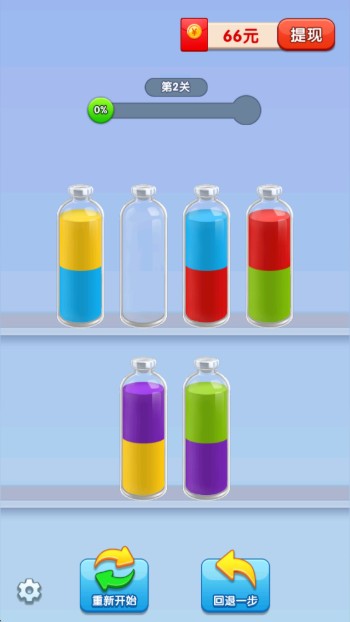 成功将所有液体正确装满瓶子后,即可完成关卡并获得奖励。每一关都是一次新的挑战,考验你的逻辑和耐心。