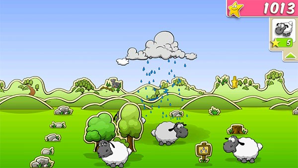 2、没有任何玩法的限制,你可以拖动云朵,来合成超大的云雨,为绵羊们带来水分