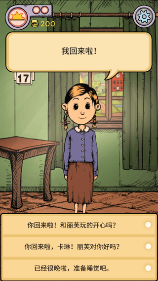 16、如果要结束这一天可以选择点击卡琳房间的台灯