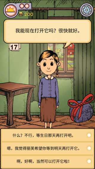 9、卡琳希望打开礼物再睡觉,可以选择第二个选项