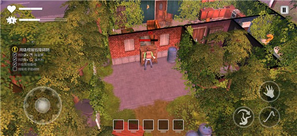 2、按照游戏提升学会用撬棍破坏家具,将前面挡路的家具破坏掉,收集它们掉落的材料然后进入里面。