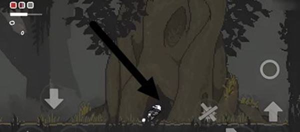4、接着往前走,如图,大树下有个树洞,点击【圆形】按钮,就可以进入卡兹村了。