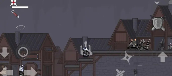 8、进入战斗界面,可以使用普通攻击和使用暗器来消灭敌人,也可以使用格挡来抵挡敌人的攻击,左上角为生命值,