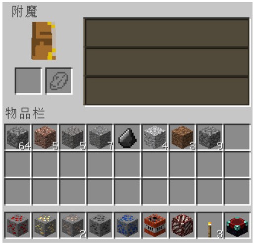 附魔时,右边的框需要放置青金石才能有效附魔