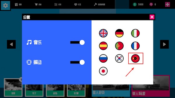 2、在设置菜单的右侧,点击中国国旗图标,即可将语言切换为简体中文