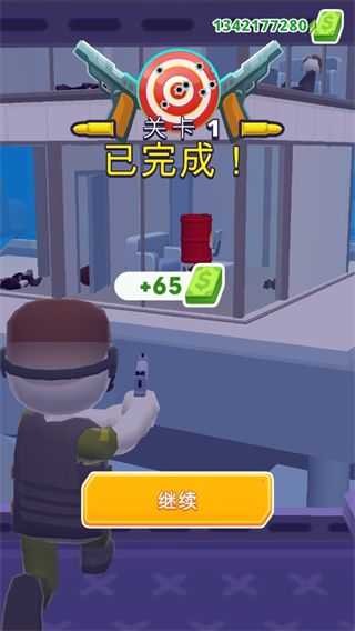 4、成功完成关卡后,你将获得钞票奖励。点击“继续”按钮,即可进入下一关卡。