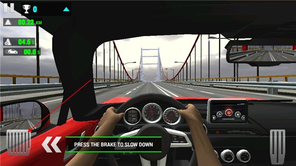1、在本站下载安装并打开赛车限制游戏,进入游戏。右边按钮是油门,点击可以加速。