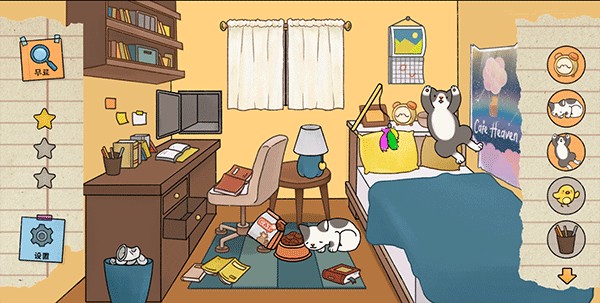 1、喵侦探咪雅受托在脏乱的房间内寻找它的小猫,以及主人的失物。