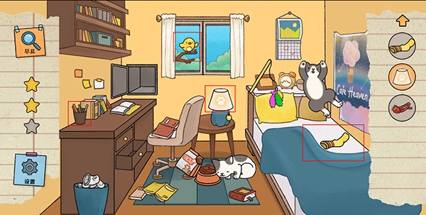 2、点击屏幕就可以与各种物品互动,操作简单,随时都能加入其中,寻找丢失的小猫咪