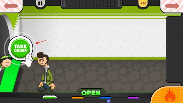 5、店铺开张,来了一名客人,点击绿色按钮“TAKE ORDER”进行点餐。
