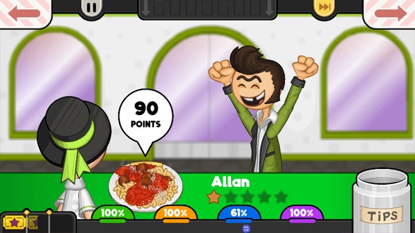 9、制作好后顾客开始试吃,吃完会进行打分,会给一些小费,这些小费可以购买道具用来帮助师傅制作更美味的食物。